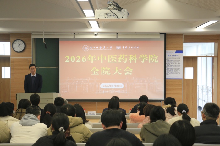 陈忠校长充分肯定中医药科学院在“十四五”期间取得的工作成效。他说,中医药科学院各项事业稳中有进、质效齐升,整体发展态势持续向好,是学校科研高质量发展的重要支撑。陈校长指出,2026年是学校决胜高水平大学和一流中医药大学建设的攻坚之年,要求全院教职员工紧紧围绕学校确立的发展蓝图与实施路径,牢记初心使命,强化责任担当,合力攻坚奋进,努力开好局、起好步,全力谱写中医药科学院高质量发展新篇章,并提出三点期望。一是扎根平台,牢记初心使命。作为学校科研创新服务的主阵地,中医药科学院要全面支撑高水平科研和一流中医药大学建设,实验技术人员都要深刻认识这个岗位肩负的责任,大力促进开放共享,主动对接科研需求。二是持续学习,开拓技术创新。实验技术人员要对职业生涯进行长远规划,要敢于打破思维定式和学科壁垒,积极探索中医药与现代科技结合的交叉点、生长点,在研究方法、技术手段等方面大胆创新,努力成为科研创新链中不可或缺的关键技术节点。三是精益求精,建设富春新校区。全院上下要提高站位,积极配合两校区科研协同发展布局,做好相关实验室、科研平台的搬迁与建设,共同将富春校区(南区)三幢科技大楼建设成为功能完善、技术先进、充满活力的现代化科研高地,为科学院未来发展奠定坚实的基础。